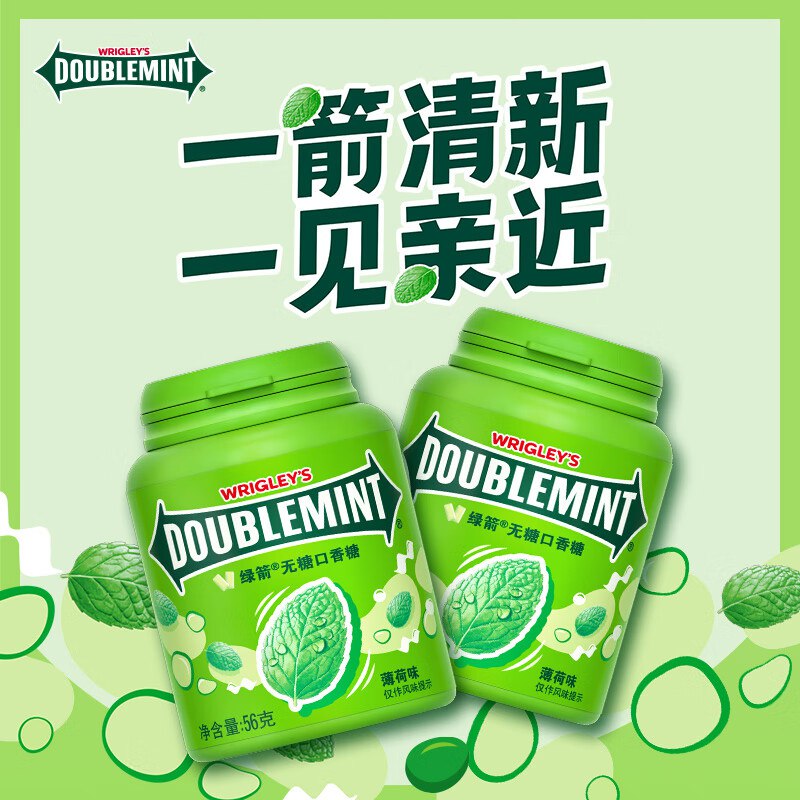 🎒 绿箭 薄荷无糖口香糖56g×5瓶