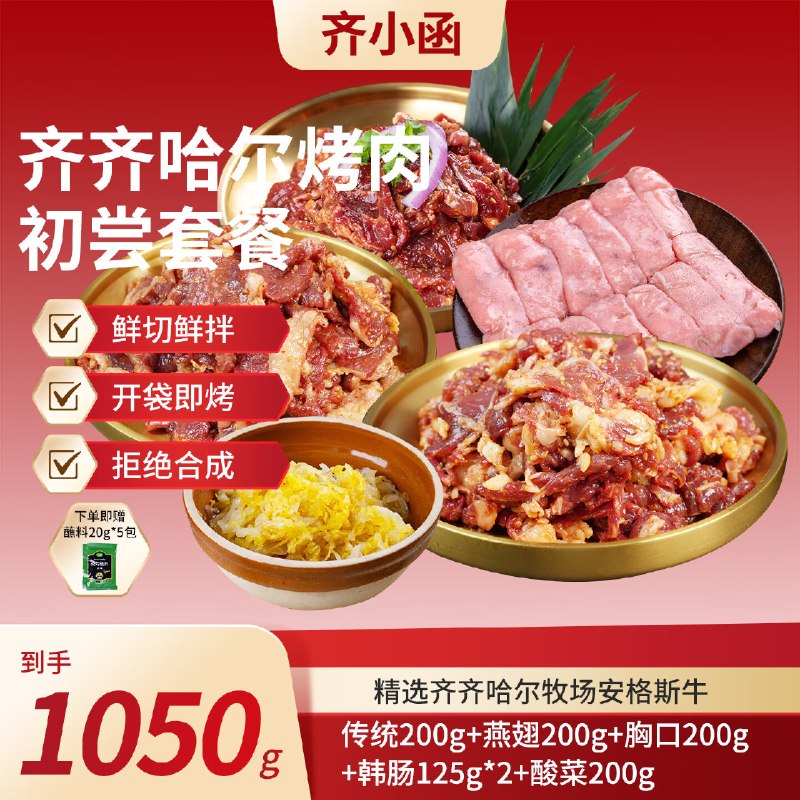 🚦 齐小函 东北烧烤食材1050g 79元,下単赠蘸料20g×5袋 ×新鲜牛