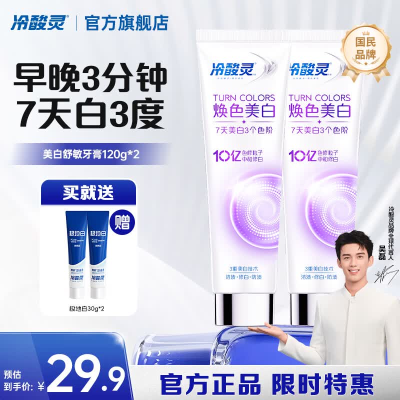 🚦 先领9-5卷 冷酸灵 美白舒敏牙膏120g×2支 19.9元,下単赠