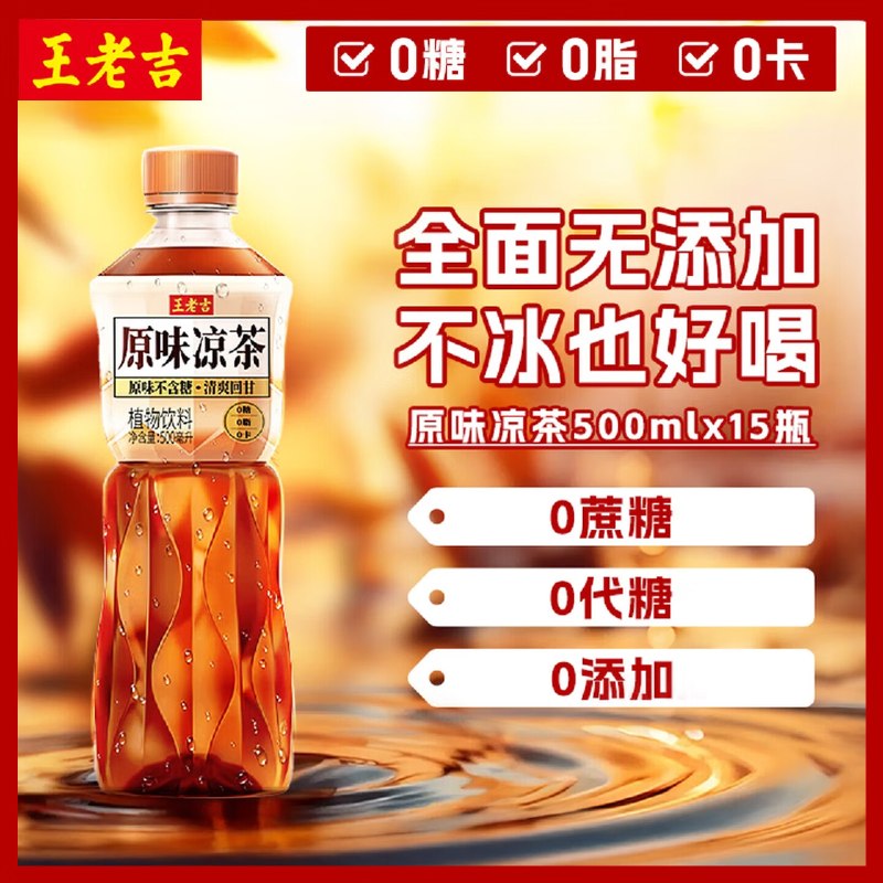 🚦 王老吉 无糖凉茶500ml×15瓶 29.9元,仅1.9/瓶 原味无糖