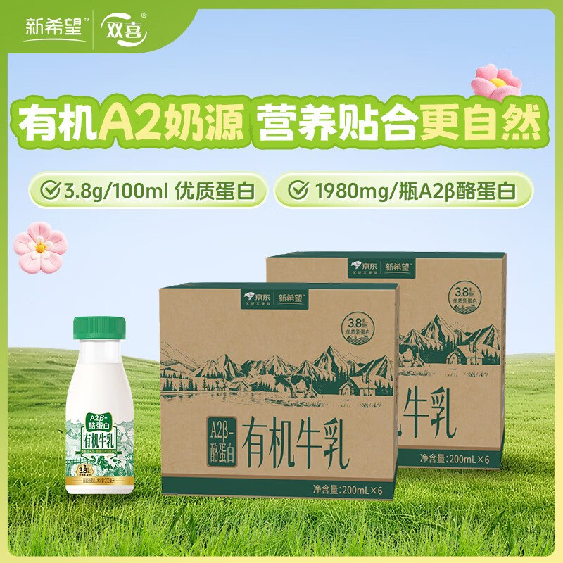 🚦 新希望 有机鲜奶200ml×12瓶 33.9元自营包邮,才2.8元/瓶