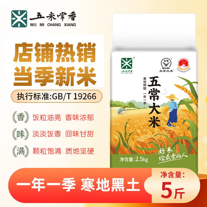 🚦 五米常香 东北五常大米5斤装 18.9元;新客仅17.9元 真空装 ——