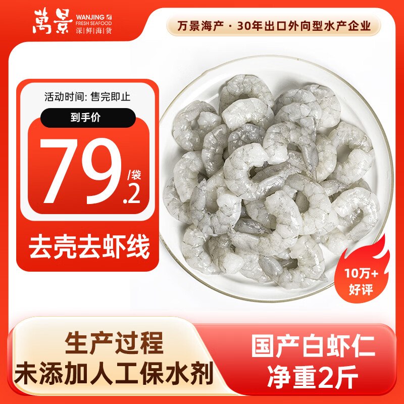 🚦 万景 北海鲜冻白虾仁净重2斤 79.2元自营包邮,首购减3元 ×去壳去虾
