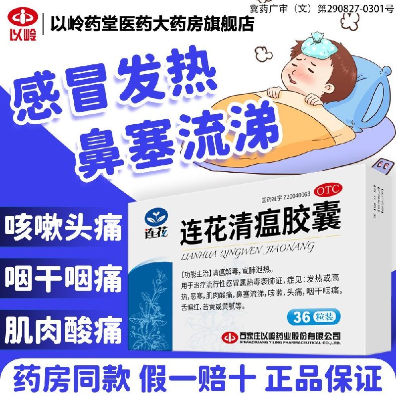 🌾 以岭 连花清瘟胶囊 0.35g×36粒/盒 连花清瘟胶囊清瘟解毒治流感感冒药发热鼻塞流涕咳嗽头痛咽干咽痛