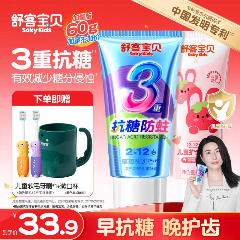 🚦 先领29-10卷 舒客 儿童抗糖牙膏60g×2支 19.9元,早抗糖晚