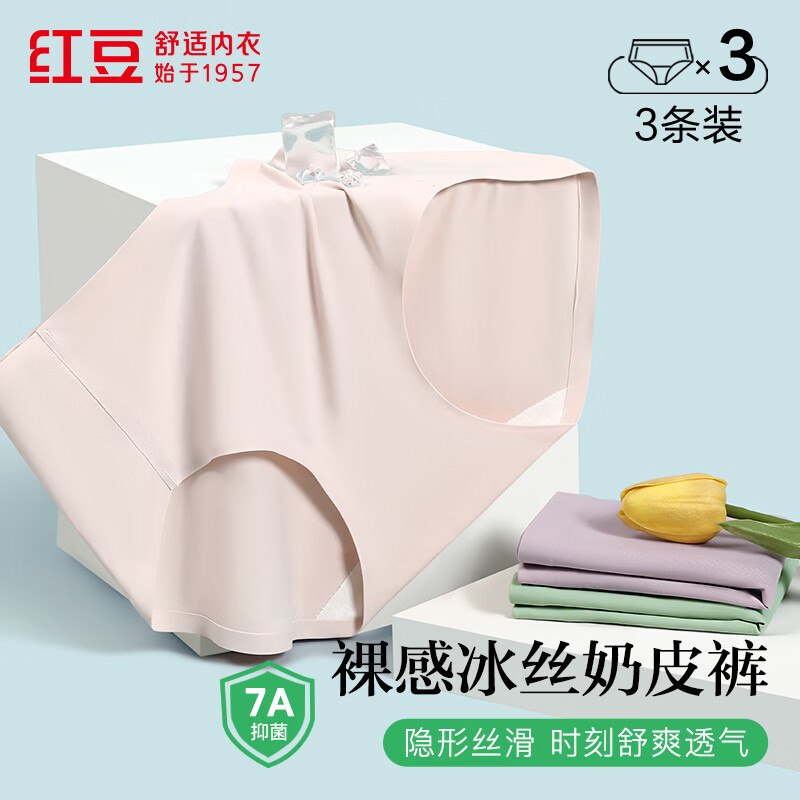 🚦 先领29-20补帖卷 红豆 女裸感冰丝奶皮内裤3条 仅.需19.9元,