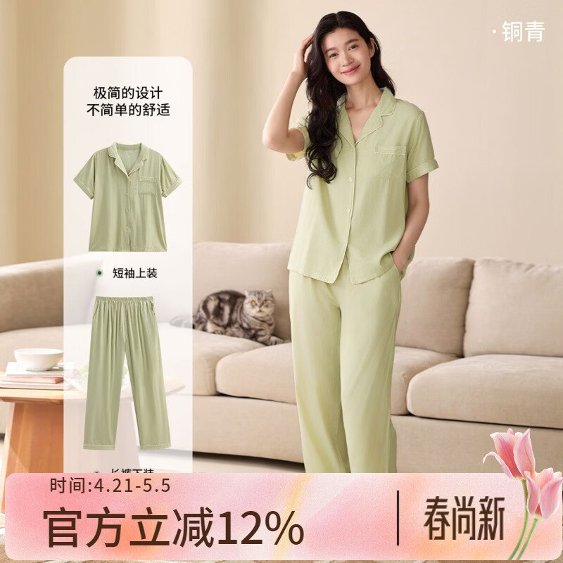🚦 秋鹿 男女凉感抑菌家居服套装 59.1元,短袖 长裤 简约翻领 ×水洗1
