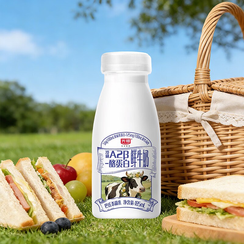 🚦 光明A2β-酪蛋白鲜奶185ml×6 叠首购拍2件35.9元 返8卡 到手