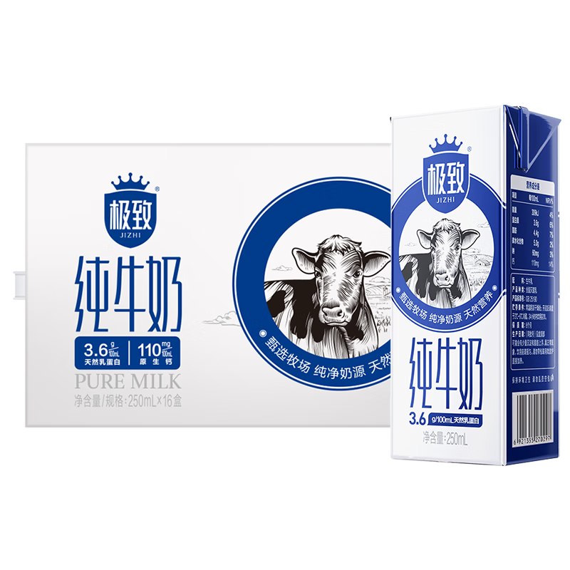 🚦 先领9折卷 【自营】极致纯奶250ml×16盒 买3件99.6元,Pl