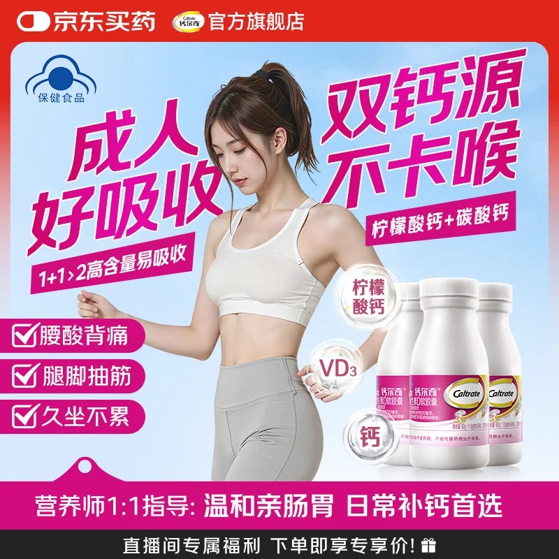 🚦 先领399-60补帖卷 钙尔奇 钙维D软胶囊90粒×3瓶 101元,才