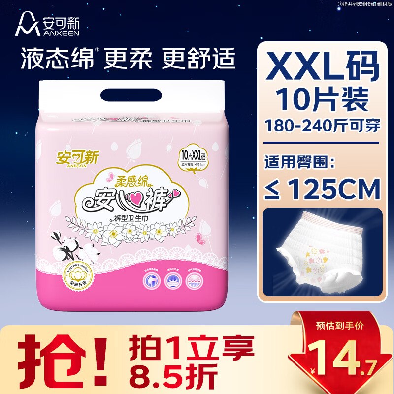 🚦 秒杀会场 (翻到得力加购) 安可新 特护级液态绵安睡裤XXL码10