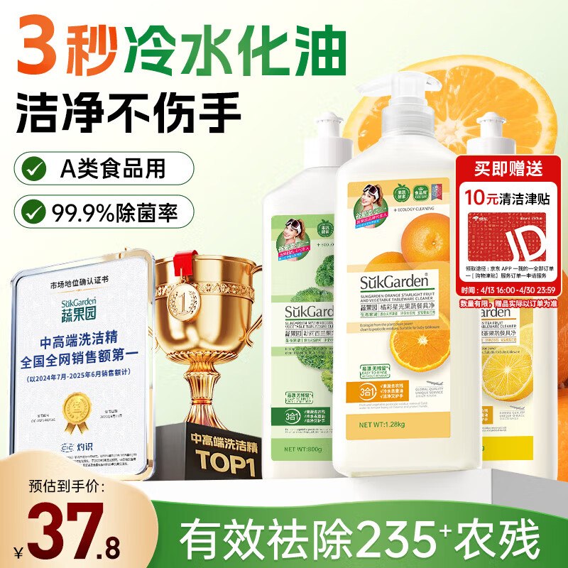 🚦 【自营】蔬果园 洗碗精2.88kg 34.9元 U,Plus33.1元包