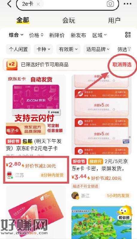 闲鱼领2元,可以买e卡T现或者充话费