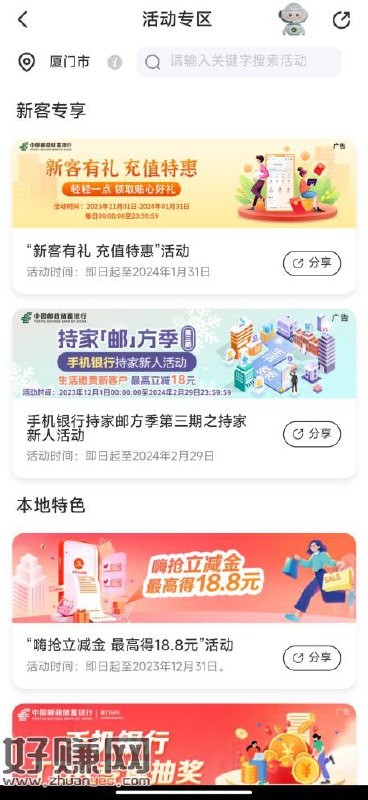 邮储银行,生活,活动专区,厦门,本地特色第1个