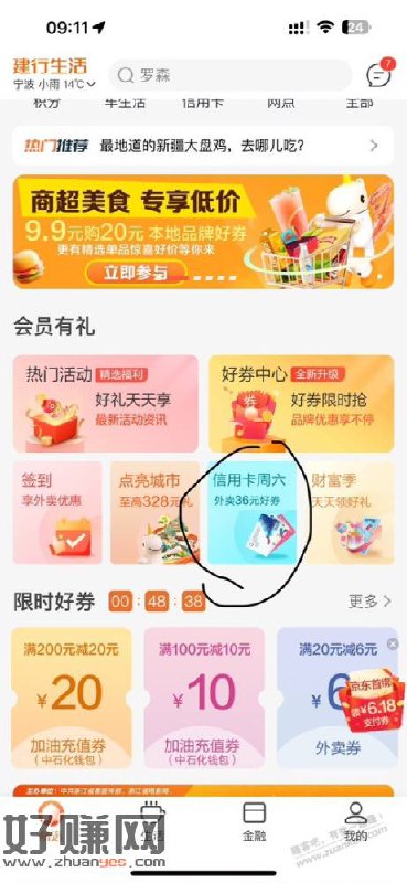 建行生活,好券中心,切外卖,有建行生活卡30-16