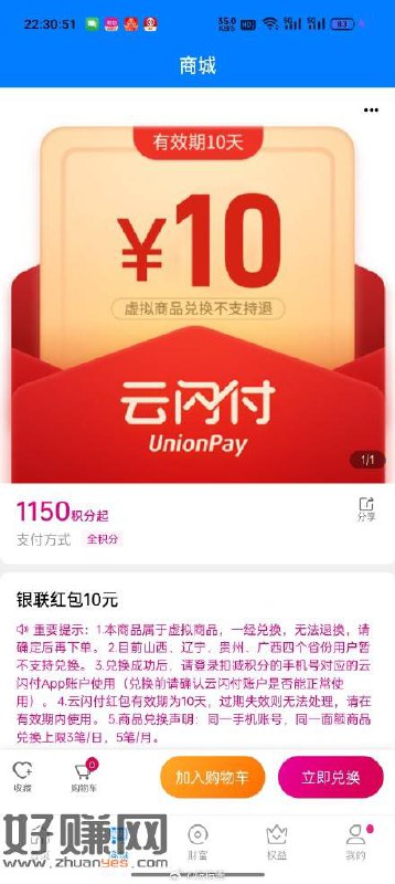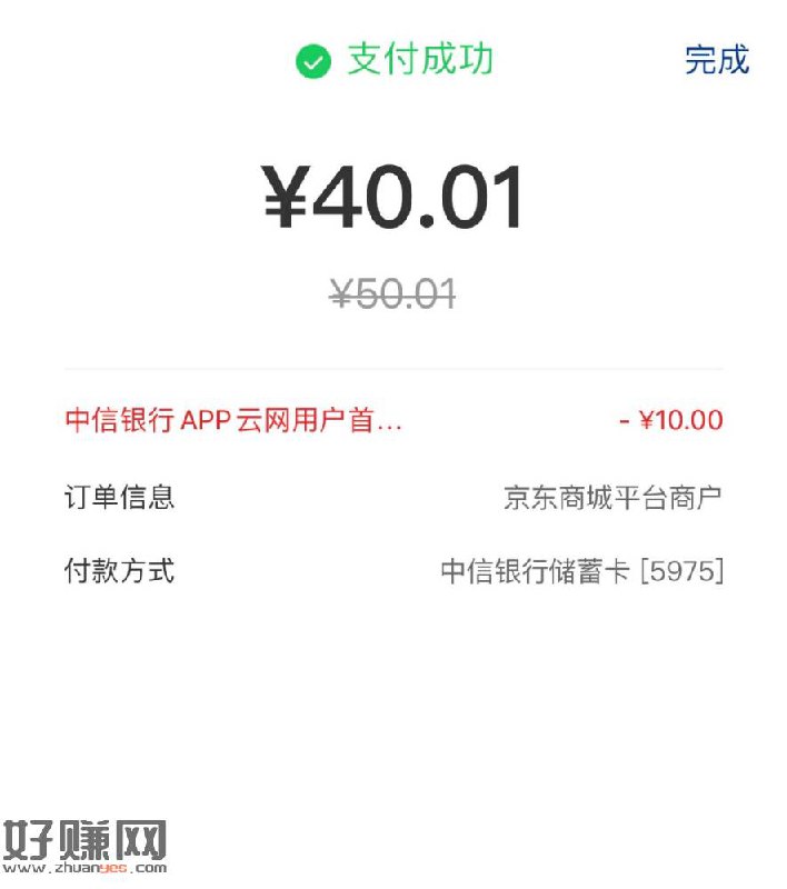 京东中信云闪付新户首单-10 沃尔玛 鱼润6 出优惠再付 自测