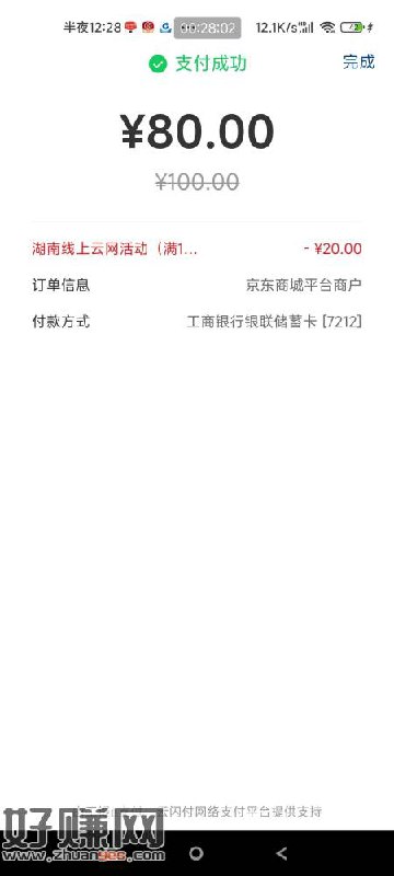 湖南 云闪付支付 京东 100实体卡 100-20又有了