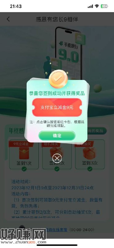 北京邮储都检查检查有没漏签到,我第三次忘了刚抽了 9 立减
