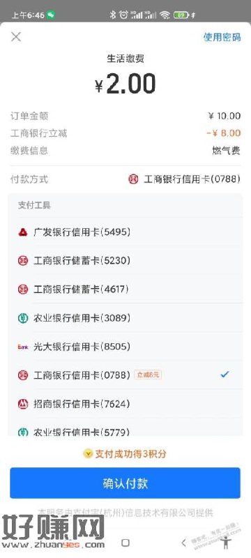 支付宝缴费工行xing/用卡优惠8元