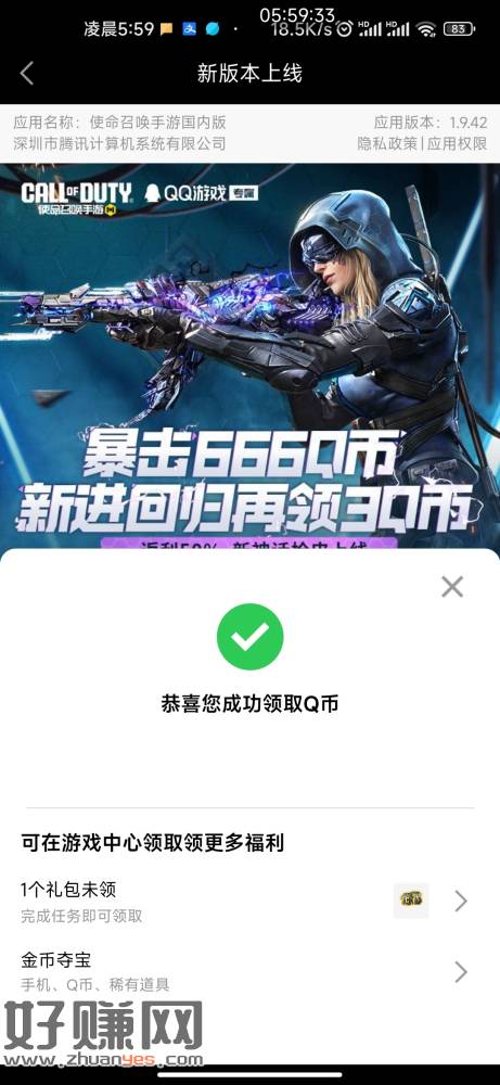 QQ打开使命召唤注册人均3q币多号多得秒玩注册就退
