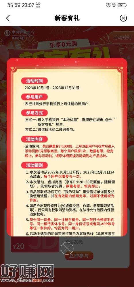 农行甘肃 上个月首次注册的,这个月领20E卡 符合要求的才行哦