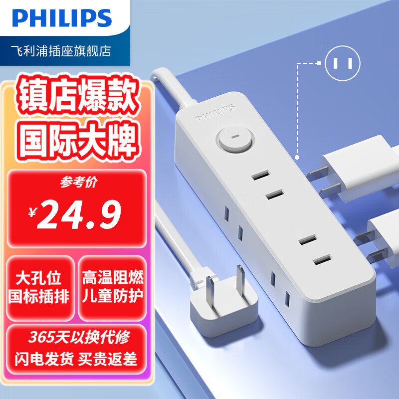 飞利浦 新国标分控插座 6位总控【1.8米】