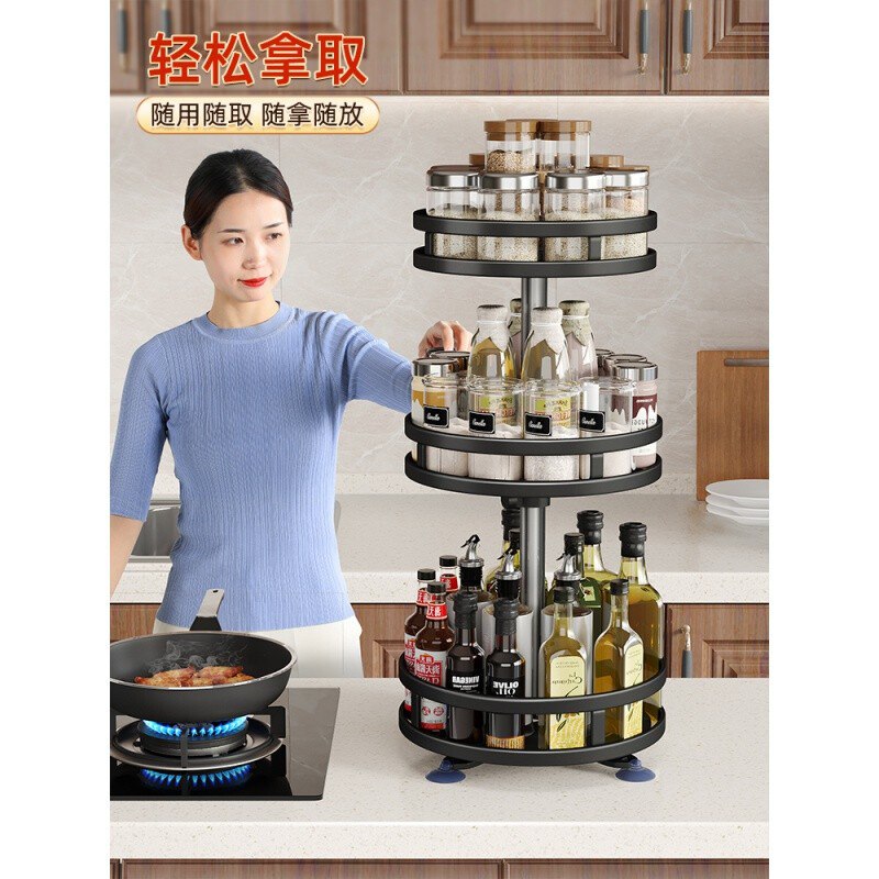 美之扣 厨房多层置物架旋转调料架 三层【可360旋转】