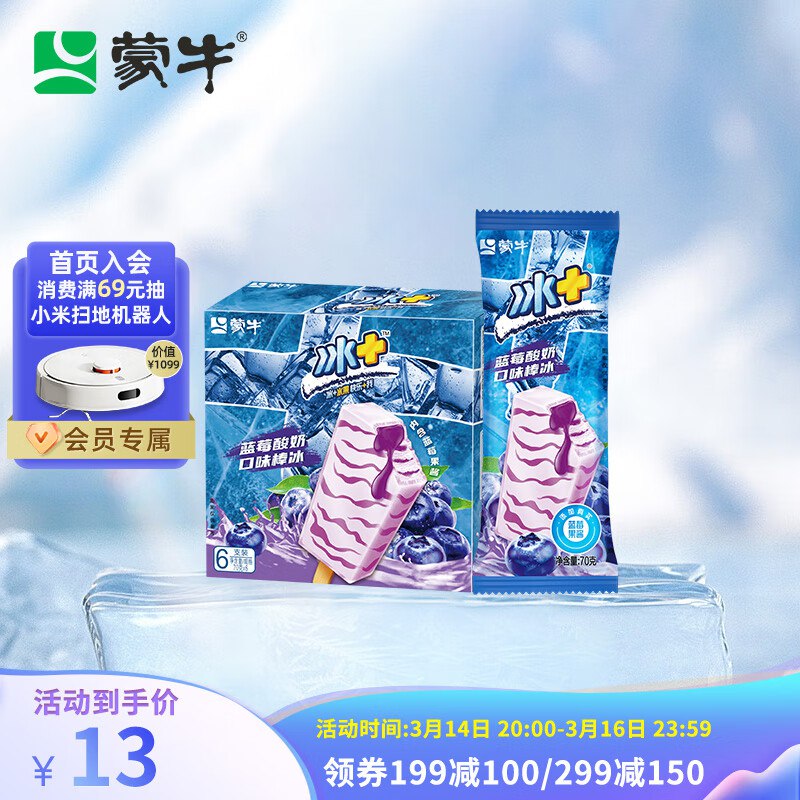 自营蒙牛冰+蓝莓酸奶口味棒冰70g*6支