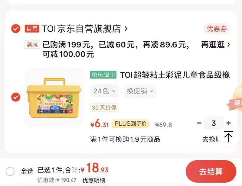 TOI超轻粘土彩泥儿童食品级橡皮泥带收纳箱 24色 3件18元