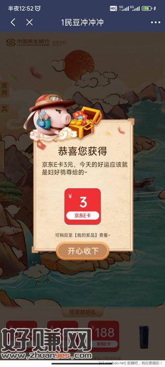 民生银行app 搜民悦生活,下拉找 1民豆冲冲冲活动 先签到一下 抽E卡