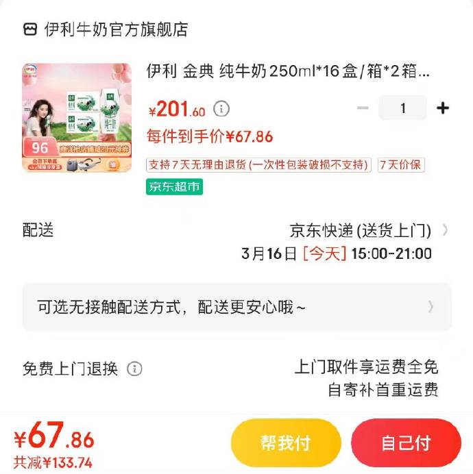 领129-31店铺券 金典纯奶250ml*16盒×2箱 拍下79.8元 折39.9